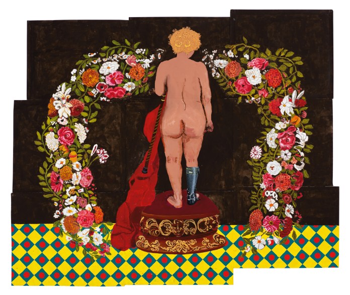 Katherine Sherwood’s work is an embodiment of her ideals as a feminist and reflect her personal experience with disability. In 1997, at the age of 44, she had a cerebral hemorrhage which paralyzed the right side of her body. Teaching herself how to paint again using her non-dominant hand was part of her healing process. Her recent Brain Flowers series of mixed media paintings on the reverse of antique art historical prints include collages of cerebral angiograms of her own brain. As part of her mission to bring attention to underrecognized women painters, Sherwood repaints vanitas paintings by 17th century Dutch and Baroque women artists, in which still lives with fading flowers suggest the brevity of life and the vanity of earthly achievements. Sherwood was born in New Orleans, Louisiana in 1952. She received a BA from the University of California, Davis, in 1975, and an MFA from the San Francisco Art Institute in 1979.