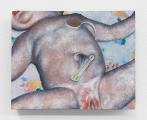 Alexandra Noel’s small-scale paintings reveal uncanny assemblages of images. She concentrates on things depicted in a manner somewhere between surreal and familiar: newborns, home objects, and suburbia landscapes. She incorporates these aspects into far-flung imagined landscapes, tragic scenarios, and reinvented cinematic moments. The little panels hint at the size difference between human bodies and electronic devices. She zooms in, crops, stretches, and rescales her little panels as if they were images on screen. The audience is invited to view them from a very intimate perspective. Meanwhile, she emphasizes the tension between being sculptural and illusionistic. As a painter, Noel establishes a linguistic parallel to the dystopic and magical themes of her works by writing fiction that resembles the tone of poetry or a movie.