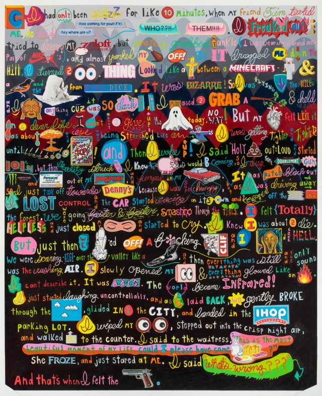 Jimmy Raskin recently closed a show at Miguel Abreu Gallery titled STATIONS OF THE LAST ECCENTRIC. Although this was not necessarily the original title, through discussions with Miguel Abreu, coupled with the fact that Raskin dubbed each work The Chosen One, the concept of stations of the cross began to surface, which led to a nod to the divine in the title. Each work features a repeating image of a cone, which Raskin says speaks to metacognition, consciousness and, unlike the progression of the stations of the cross, each is already in a resolved state. To hear more about this exhibition, which ran from December 4 through February 5, listen to the complete interview.