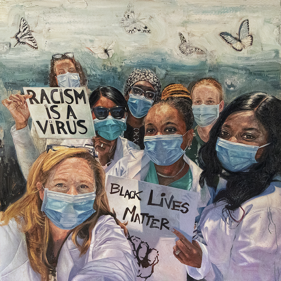 Okamura’s painting titled “I Love Your Hair” was selected in 2016 for inclusion in the “American Portraiture Today” exhibition, featured at the Smithsonian National Portrait Gallery in Washington, D.C. and subsequently toured museums across the United States.