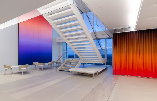 CHRISTINE CORDAY, Sans Titre (untitled), 2020 Permanent installation, Crane Hall, Saint-Paul-Lez-Durance, ITER, France Christine Corday’s two-pound sculptural object, Sans Titre, represents Art as the 36th contributor to mankind’s largest terrestrial realization of the celestial. The site-specific and functional work, which the artist forged from metals derived from ancient stars, was integrated into the ITER fusion device late last year, a physical manifestation of Art that stands alongside the material contributions of the 35 major international country collaborators, an infrastructural object within the fabricated star that will harness fusion energy for human use. Sans Titre functions both symbolically and functionally in merging the philosophical and spiritual underpinnings between Art and Science, an intersection that is frequently overlooked. Both science and art are human attempts to understand and describe the world around us. The categorizations of science, art, chemistry, architecture, archeology, and cosmology separate what materially is unified. The subjects and methods have different traditions, and the intended audiences may be different, but the motivations and goals are fundamentally the same. Image credits: ITER Organization / R. Arnoux / EJF RicheLUCIA KOCH, Dusk and Dawn, 2019 TEGNA Headquarters, Tysons, VA Light and air are the vital substances of a space, converting it into a place to be inhabited and transformed. Dusk and Dawn was created for an environment of coexistence and communication—though sound and air are isolated, transparent (glass) walls offer a visual continuity in between distinct spaces. For the TEGNA headquarters designed by the architectural firm Lehman Smith & McLeish (LSM), Koch created a work comprising a thirty foot LED back-lit color gradient lightbox that spans the height of the three-floor atrium. The lightbox establishes a dialogue with the free-flowing curtains installed on the opposing side of the atrium. The curtains, though separated by a floor, represent one continuous vertical color gradient establishing the overall unity of the work which represents the color transitions throughout the course of the day. Image credits: Christopher Grimes Projects