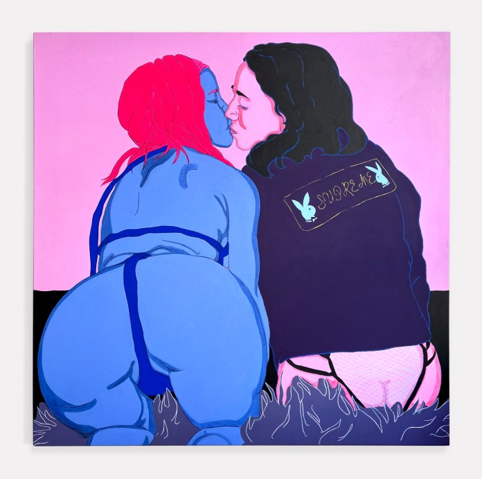 At its core, the work addresses sexual identity and fluidity. The acceptance she has found in the queer community is tantamount in importance to the artist personally as it is to her artistic concept. Approachability is one of the major goals of Trujillo’s canvases – her goal is to welcome the broadest audience possible.