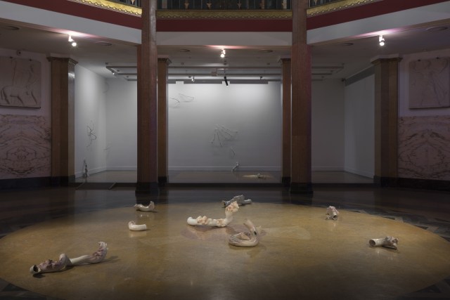 Blind Sun/ Sol Cego, Installation view, Culturgest Porto (PT), 2020; Mixed Media (Porcelain, stoneware, copper, alum crystals, sound (30 m). courtesy the Artist, photo © Alexandre Delmar