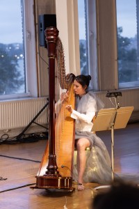 Recent performances that she has written, directed and played harp in include “The Song of Dirt Stammers Our Tongue” a live staged radio operetta performed at the Kitchen last month, and “Esra” a live staged adaptation of a radio drama, performed in the panorama of New York City at the Queens Museum. Esther Sibiude’s music ensemble includes a violist, cellist, vocalist, an organist who plays the synthesizer, and herself on the harp.