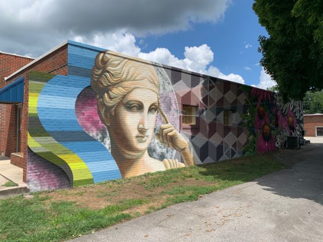 A Cincinnati native, Ustick has become one of the most prominent muralists in her region, completing over 10 large-scale public mural projects with ArtWorks and several independent projects that include commissions from the US Soccer Federation, 21C Museum Hotel Cincinnati, and multiple local establishments. Her Mr. Dynamite (James Brown) mural in Cincinnati has earned her and Cincinnati international attention. Elsewhere in the U.S., Ustick has created or contributed to murals in Tennessee, New Mexico, Illinois, Kentucky, and Florida, including invitations to the Walls for Women mural festival in Tennessee, and the CRE8IV Mural Festival in Rockford, Illinois. Internationally, Ustick has participated in the Proyecto Palimipsesto mural residency with La Fundación ‘ace para el Arte Contemporáneo y el ‘acePIRAR, Programa Internacional de Residencias Artísticas in 2017 in Buenos Aires, Argentina, and was Artist in Residence in spring 2018 with the Graniti Murales program in Graniti, Sicily.