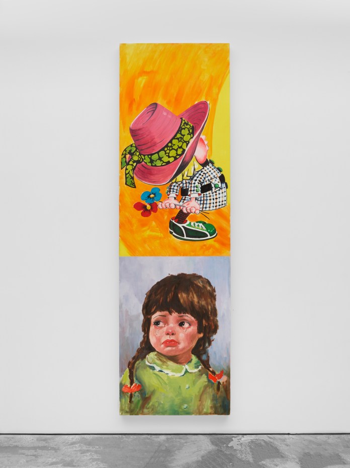 Julia Wachtel(b.1956, New York, NY) lives and work in New York and Connecticut. Wachtel’s oil, acrylic, and silkscreen-on-canvas paintings, which are drawn from popular culture, explore the impact of our image-saturated world. A figure of the Pictures Generation artists who emerged in early-1980’s New York, Wachtel’s early work mined posters of movie stars, pin-up girls, political figures, and pop music icons, as well as cartoon figures drawn from commercial greeting cards.
