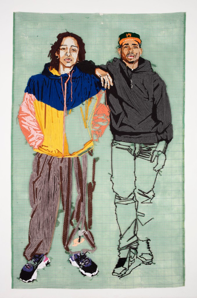 Marly & Luis (green), 2022 Yarn and acrylic on plastic canvas, 96 x 60 in. Courtesy the artist and ACA Galleries, New York