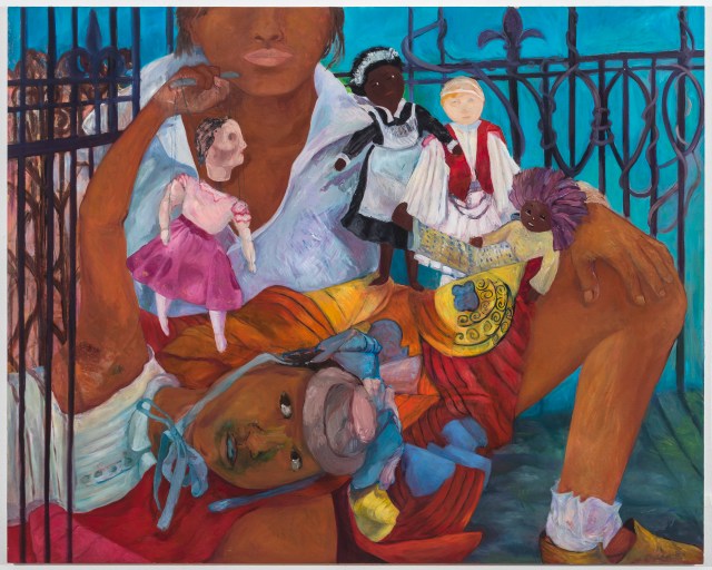The lush color palette and dreamlike positioning of the figures ensures that their vulnerability – of age, of race, of sexual identity – is seen as strength and not as weakness. “My figures navigate a world of uncertainty as they search for understanding—both internally and in ever-shifting environments. I see the figures as vehicles to explore the existence of the most vulnerable adolescents, those evolving people of color, grappling with what will define and identify them. My paintings give voice and space to invisibility.”
