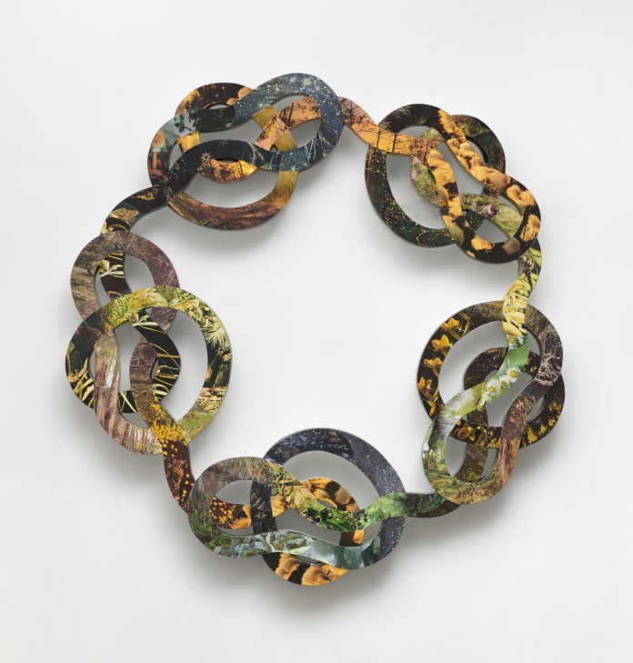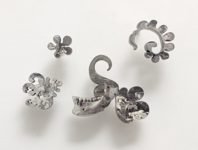 Rochelle Voyles (b. 1989, Toledo, Ohio) is a Brooklyn based multi-disciplinary artist whose works explore the cyclical nature of humanity’s patterns and the underlying impulses that drive behavior. Mining historical textile diagrams and found images, Voyles arranges fragments of different moments meticulously in collage on-wood cut sculpture. She dislocates, interrupts, and re-purposes found images in order to decontextualize her experience of reality and decipher our collective relationship to photographs.