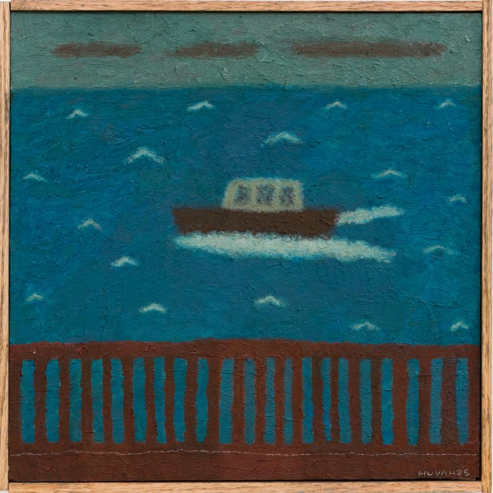 Tony Huynh, Morning Ferry, 2025 oil on panel, in artist’s frame 12 x 12 in 30.5 x 30.5 cm Image courtesy of Mikhail Mishin.